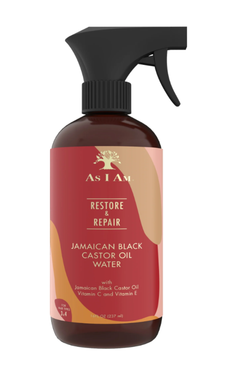 - Appliquez AS I AM Jamaican Black Castor Oil Water sur cheveux secs ou humides pour hydrater quotidiennement.