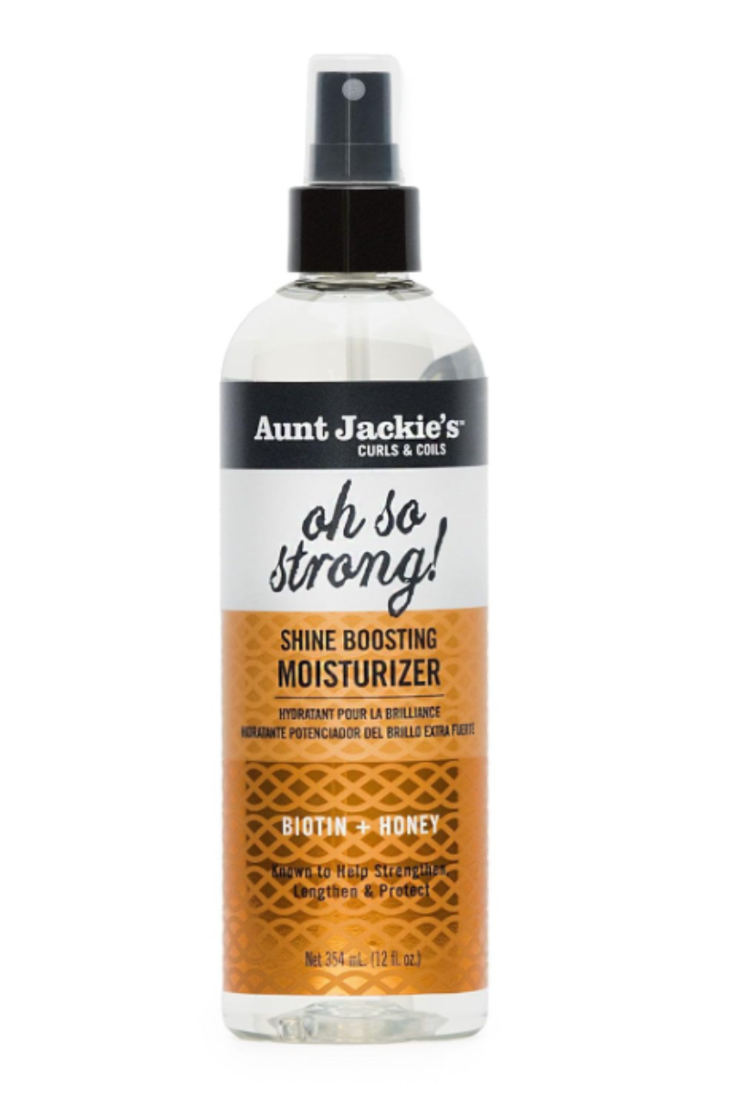 AUNT JACKIE'S Curls and Coils Oh So Strong Shine Boosting Moisturizer est un soin hydratant conçu pour revitaliser et nourrir les cheveux tout en boostant leur brillance naturelle. Idéal pour les boucles et les textures ondulées, il aide à réduire les frisottis et apporte une douceur incomparable.