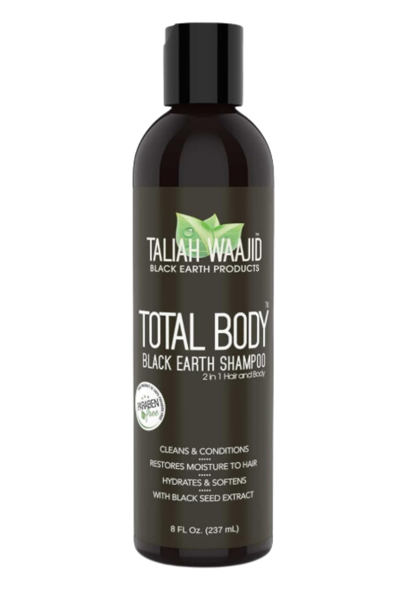 TALIAH WAAJID Total Body Black Earth Shampoo nettoie en douceur tout en nourrissant vos cheveux et votre cuir chevelu. Ce shampooing multi-usage est idéal pour les cheveux naturels, locks, twists et autres coiffures protectrices. Formulé avec des ingrédients naturels, il élimine les impuretés sans assécher les cheveux, laissant une sensation de propreté et de fraîcheur.
